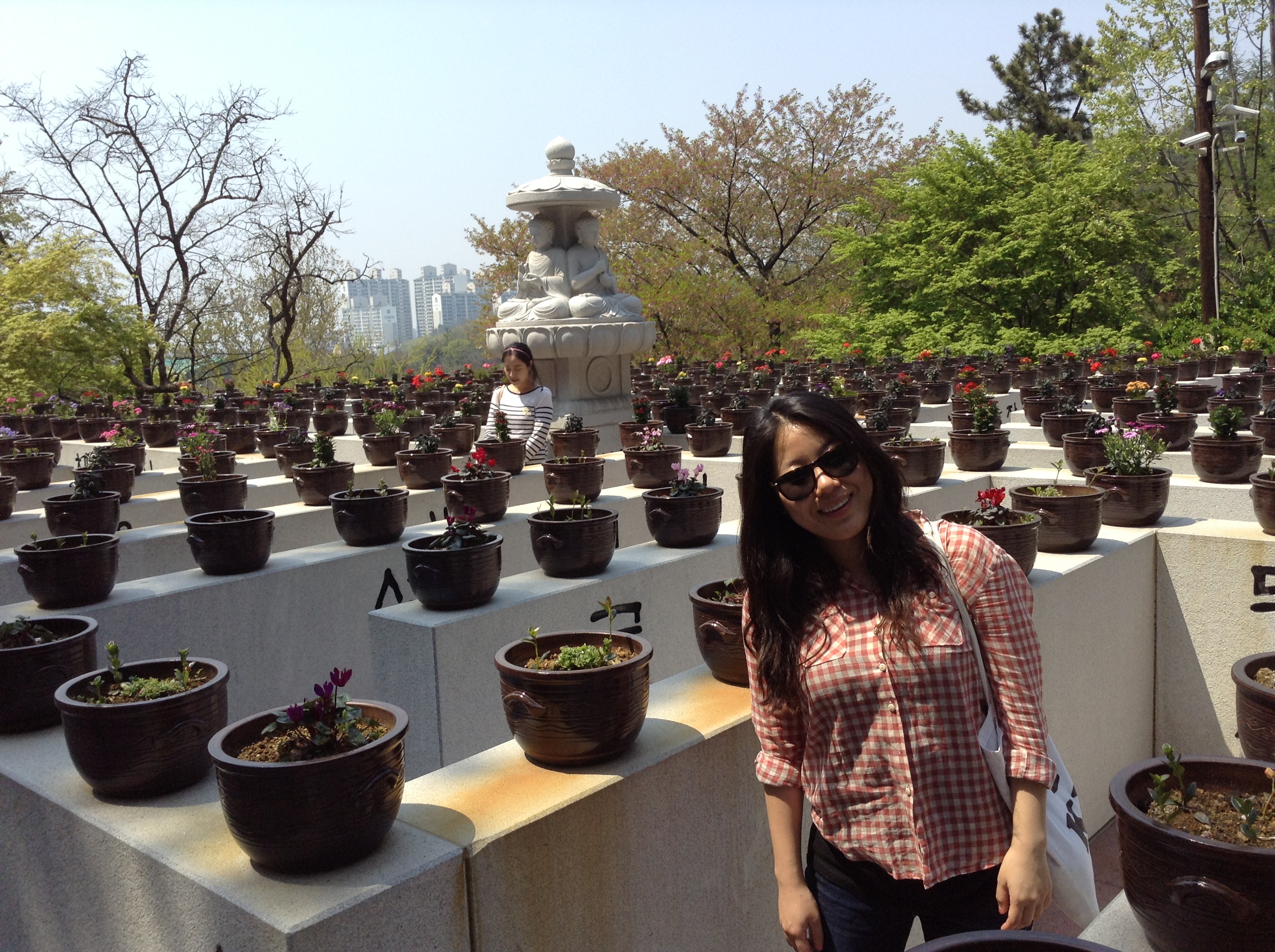 Saturday morning I got up early(ish) and went out to meet Mi Ra, my language exchange partner. She was, as usual, a little late but we went to get some breakfast and got started. I’ve now learnt how to say ‘There is a…’ and ‘Here is a…’ and have finally master the ability to ask where the toilet is. That took longer than it should have and has led to some highly awkward mime in the past. After the language exchange Mi Ra suggested that we go and have a look around the local Buddhist temple. She thought it was Buddha’s birthday (which is next week), but we met with Joe and his language partner and had a walk around the temple. It was a really nice place, hidden above the slightly run down and grotty area of Ganseogogeri. There were a few people praying in the buildings and the grounds and preparations were being made for the birthday celebrations, lanterns and banners being hung around the buildings. After looking round the temple we moved onto the park and managed to find a football for a kick around. This finished when the ball was booted into the pitch next to us where two teams were playing a proper game. I ran onto the pitch to retrieve it, head down, red faced, and we made a swift exit.