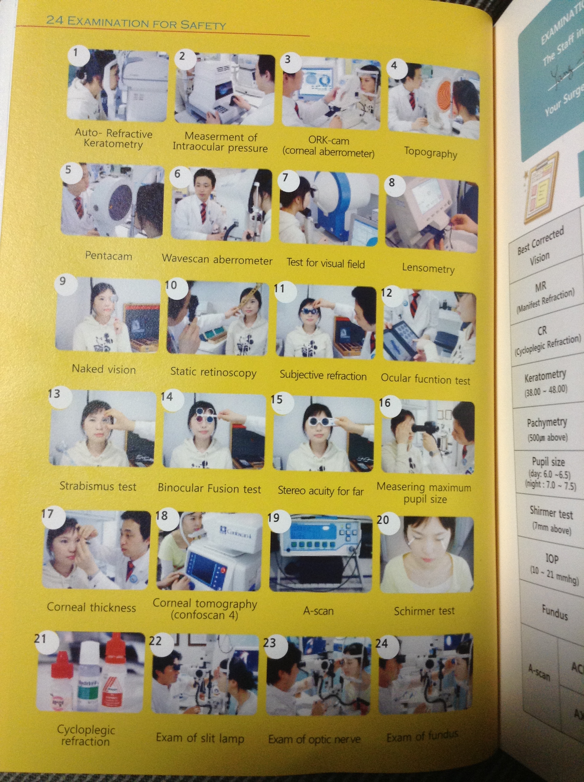Before this test I had had about 20 others, according to the booklet they gave me I have a total of 24. After each test, CY explains the results and what they mean. Her English is perfectly understandable and she has answered all my questions well. The first few tests were normal eye tests, like those you get when you go to the optician. These were followed by a range of different tests, each with its own machine. CY took photos of my retina (it’s beautiful), checked the health of my eyes (everything’s healthy) and measured the depths and thicknesses of different parts of my eye (all within normal limits). The only thing bad about my eyes is that they over-dilate in the dark, widening to 8mm’s rather than the average 7-7.5, so I’m at risk of having night glare after surgery. One test involved giving me a couple of eye drops, one to make my eyes relax and my pupil fully dilate, and another to numb my eyes. They were then poked with a couple of stylises (styli?) to measure more depths and thicknesses. I had a stupid grin on my face all the way through, CY even asked if I thought it was funny. I did, after all, it’s not every day your sitting in an eye clinic, in Korea, being poked in the eye by a pretty optometrist.