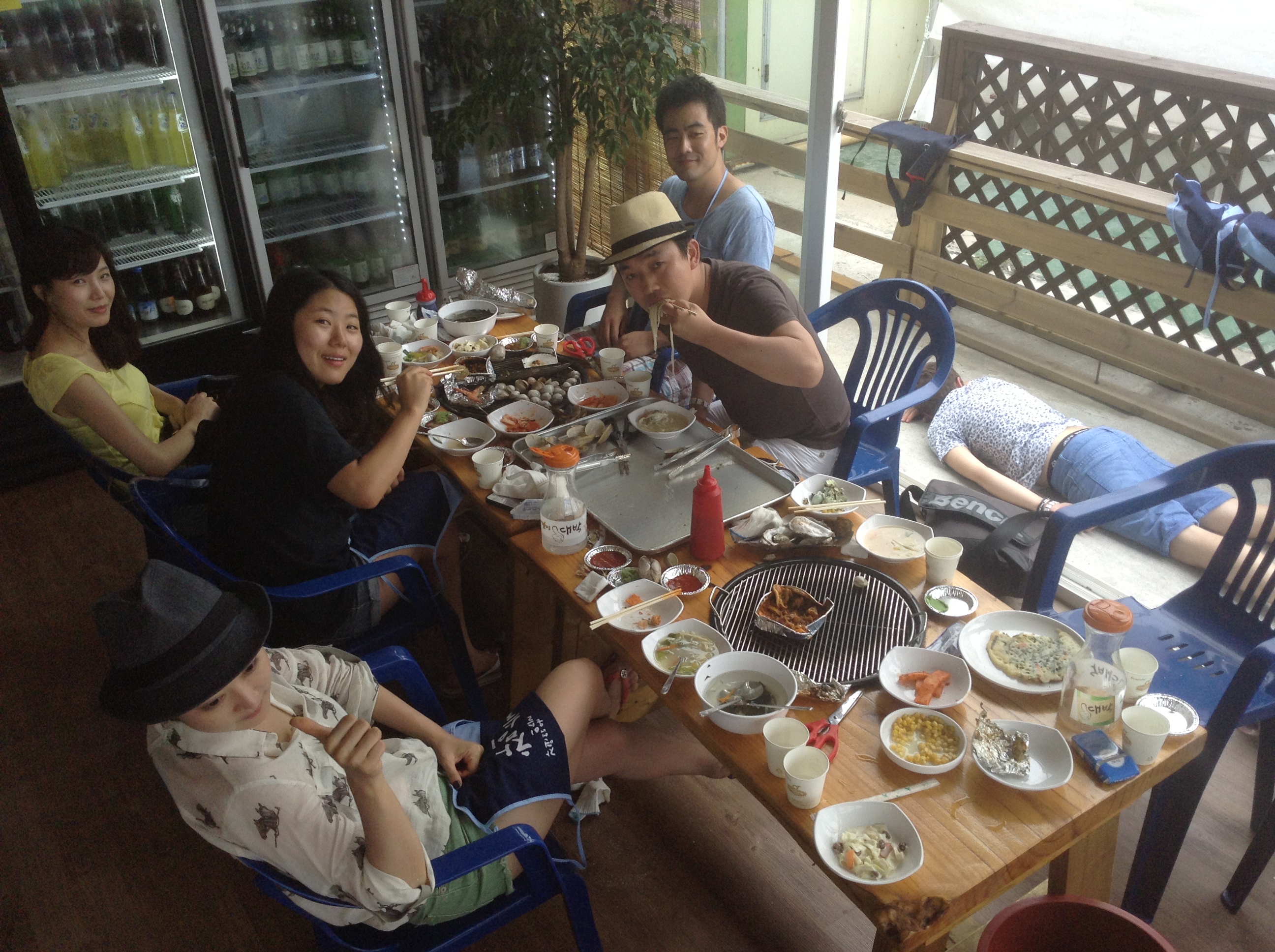 When you first drink soju the hangover takes you to a special kind of hell. I came out easy and was tired but not suffering especially. Josh looked a bit more like the walking dead. Our conditions improved a little after an hour or so on the beach with Sophie (who didn’t look at all like she’d been up until 6am the night before), Amy and Ho Jun. We challenged our hangovers and played a great game where you hold up one leg so your legs look a bit like a 4 and hop around using your knee to try and knock people over. By the time we left the beach I was almost back to normal but neither myself or Josh were normal enough for what came next.