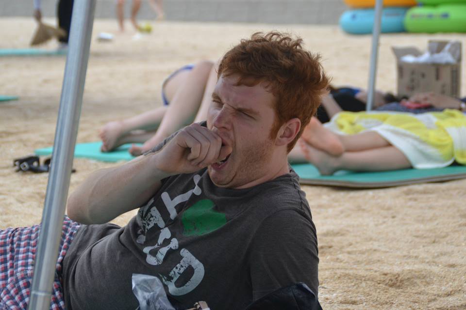 It was still hot and sunny around 6pm when we got down to the beach. I was ready for the cold water, I had mentally prepared myself on the short walk from the arena to the crashing waves. I’m English, I’m trained to deal with stupidly cold sea water, it’s what we do. I know well that it starts like a bucket of ice and then your body goes numb to it and everything’s fine until you either get out or freeze to death in the water. I ran in, holding my breath and bracing myself for the felling of a million tiny piranha tearing at my skin. I was not ready for it to be warm, it was more of a shock than the cold would have been. It was like being in a salty bath with about a thousand other people, jumping at every huge wave that crashed into the beach. The swell was easily five or six feet and the waves were merciless but people were carrying on and taking the beating. Some (like us) even rented rubber rings and rode the huge waves on these. My ‘I ❤ MUD’ T-shirt, which I had made my peace with before the festival, accepting that this was one festival it would be proud to die at, was clean in minutes , along with the rest of me. After a little while in the waves and water, it was time for some more beer.