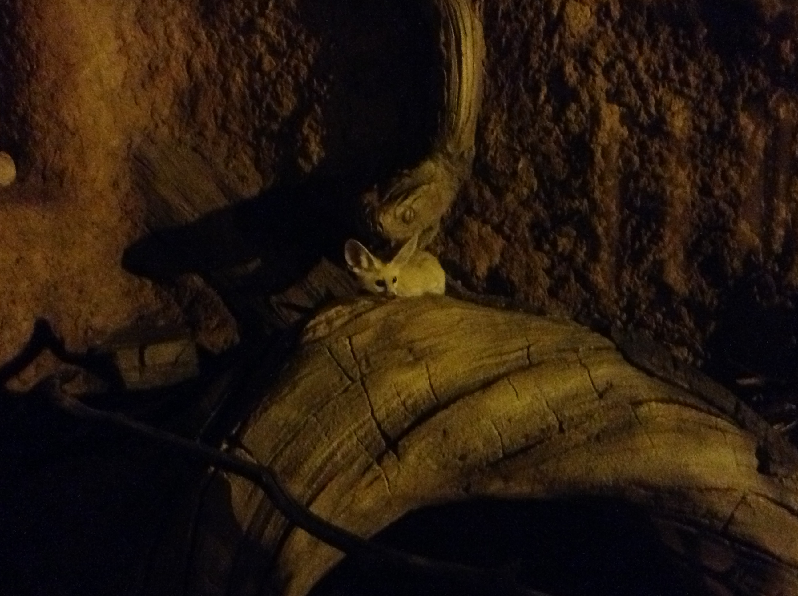 It was dark when we reached the back of the zoo and jumped off the sky lift. We were greeted by the foxes and the wolves, almost all of which were fast asleep. In fact most of the zoo seemed to be asleep, or missing. The monkeys all seemed to have been taken inside for the night and the unlit enclosures of most of the animals looked deserted. I should also add that they didn’t put too much thought into most of the cages, and many had thick bars placed very close together, some of these also had ivy growing up and between them, which was really pretty, if you didn’t mind that you couldn’t see than animals through the leaves.