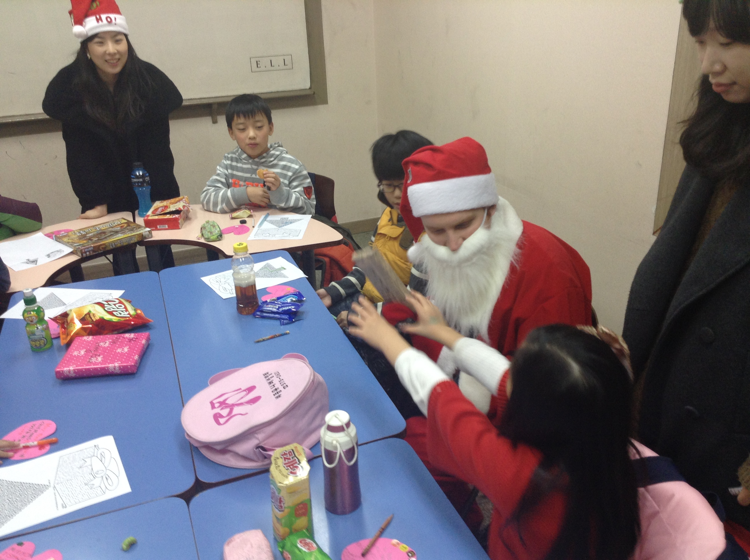 Working on Christmas Eve is never what you want to be doing, but when you do have to work, then working in a school is much better than working in retail. While there isn’t nearly as much planning for Christmas as there was for Halloween, Christmas at the hakwon was pretty good if you ask me (if you ask Josh you’ll get a very different response).