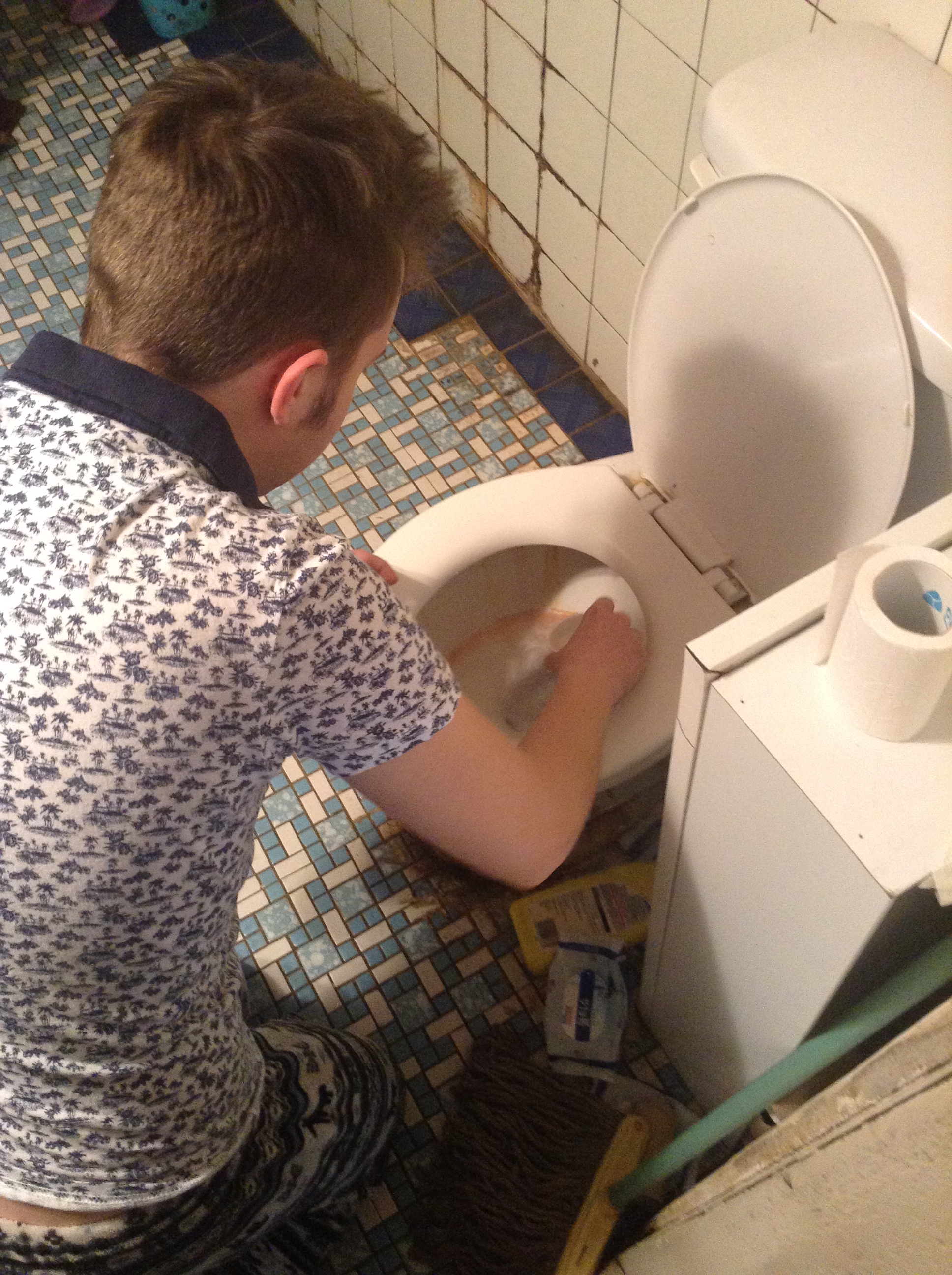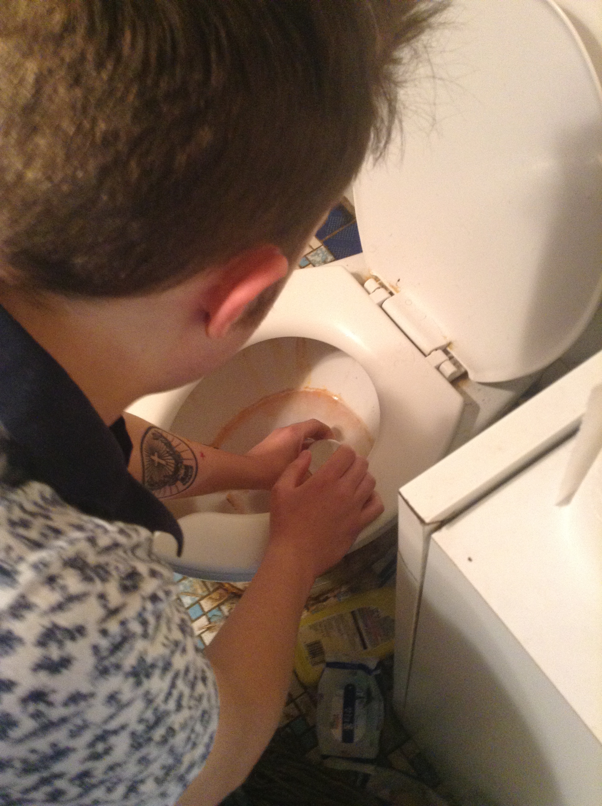 I went to Susie’s that evening and the next day Josh and I used a coke bottle and a plastic bag to make the tank safer for the small fish, named Flushy.