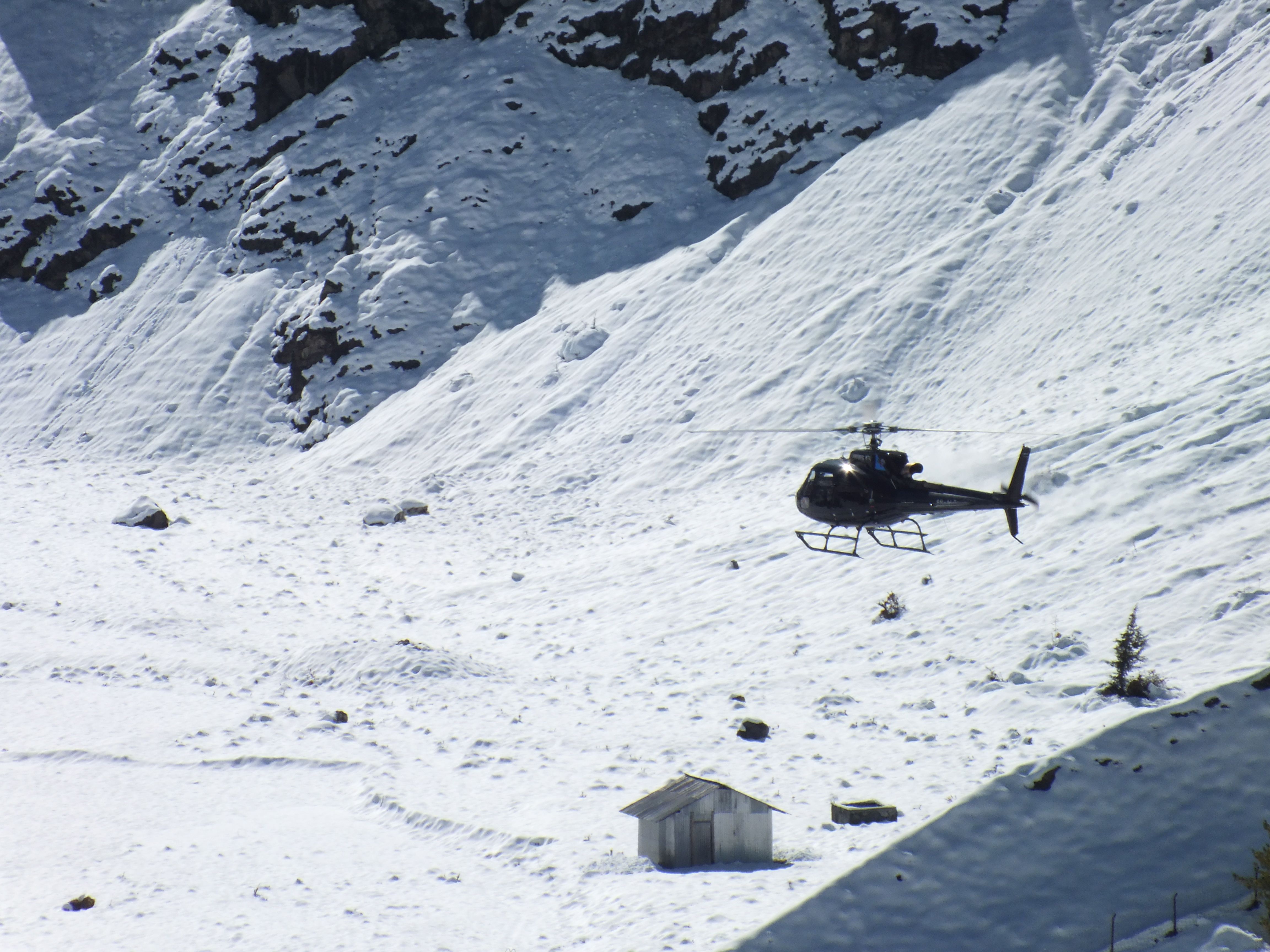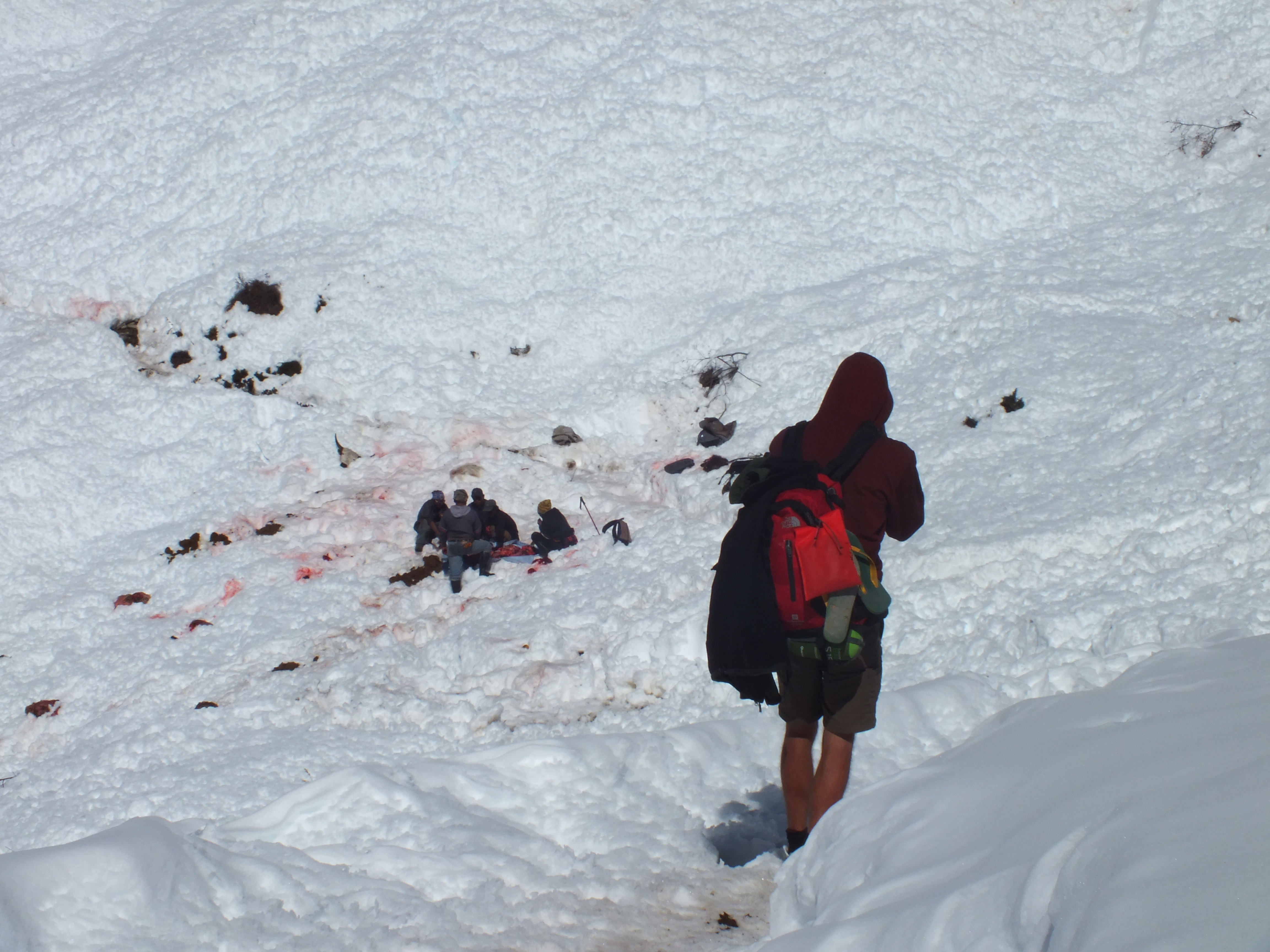 Not long before Yak Halka we came across the wake of a large avalanche. Halfway up, along the path we were following, the snow was stained red and brown and men could be seen working in the snow. As we approached we were shocked to see a few severed heads by the side of the path and the men were busy butchering the Yaks they had belonged to. One man told us that he had lost all six of his yaks in the snowfall and they were doing all they could to find them before the meat was lost. They were probably his only means of living in this isolated place, and they had only found two. Soon after, we reached Yak Halka and found that new specials had been added to the menu, all featuring the yak we had just passed.
