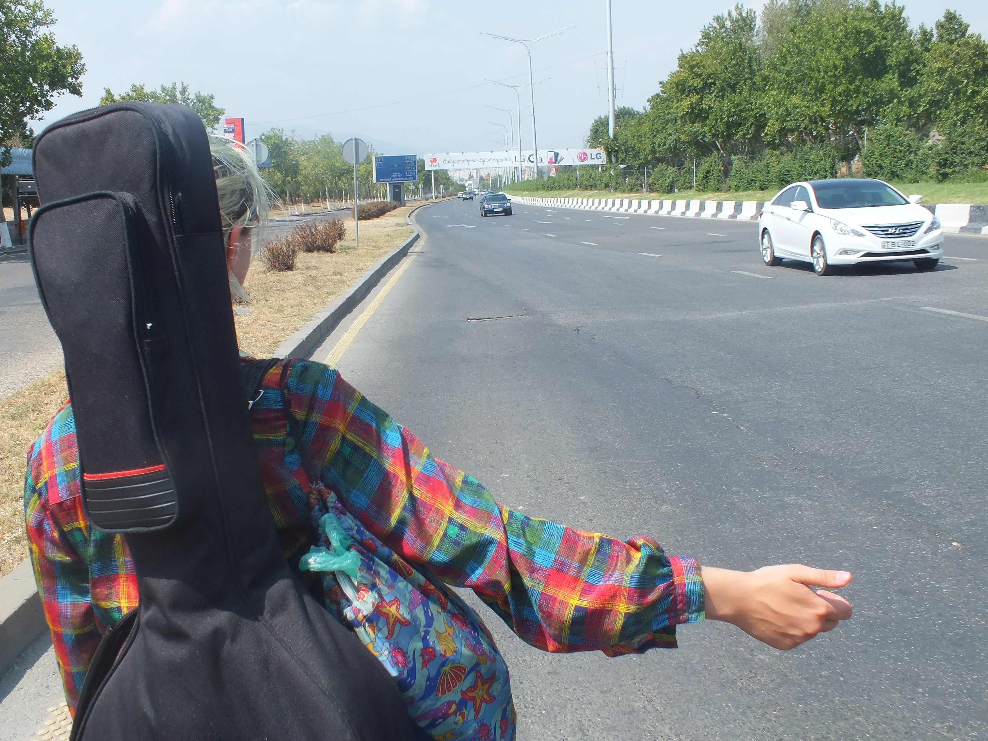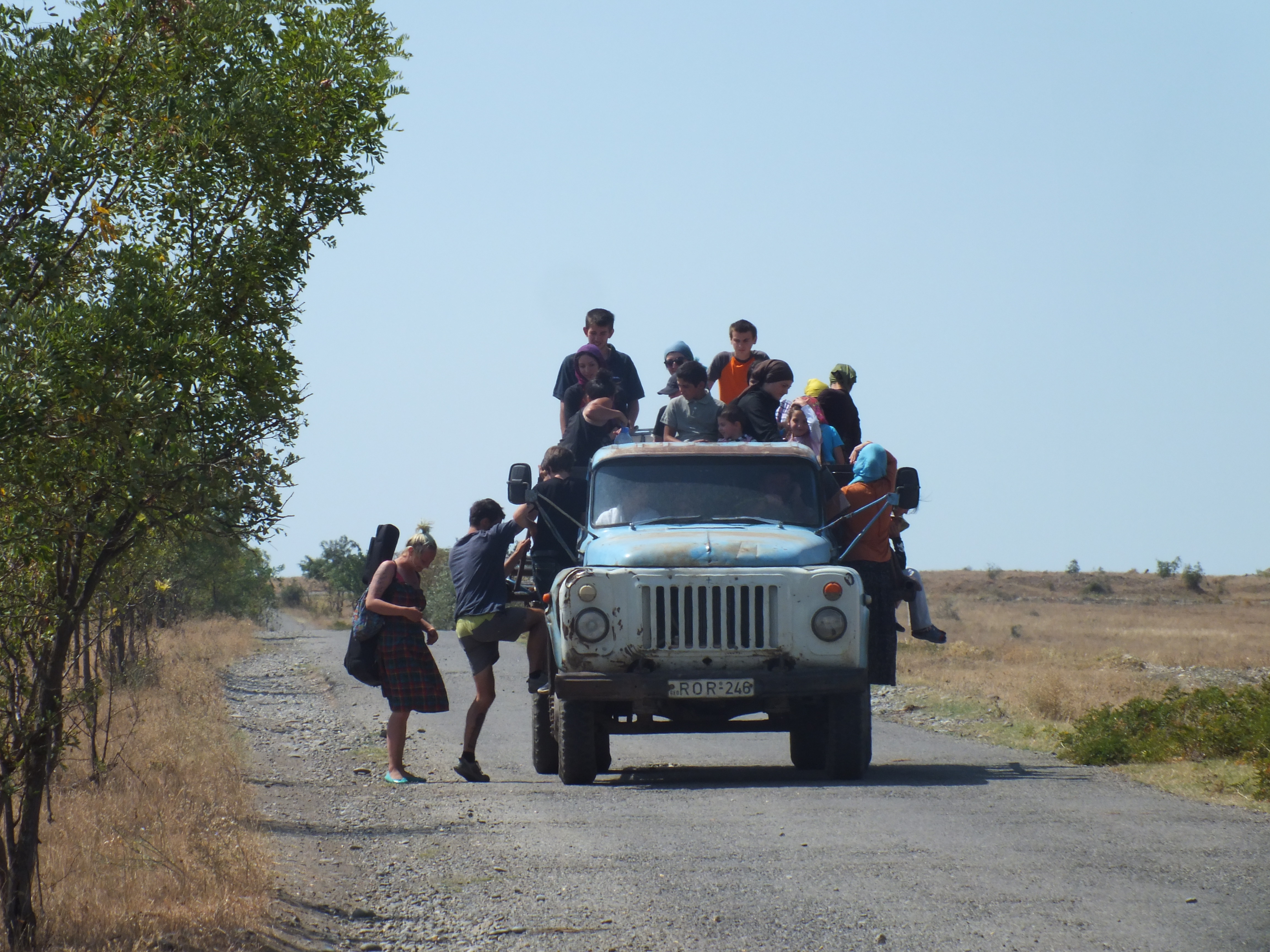 We hitched a ride on an open truck with seventeen locals and then split up again. This time I went solo with five Georgian boys. Only once the door was shut and we started moving did I notice how young they were, then I was told that the seventeen year old driver isn’t even allowed a license for another year. I sent a prayer out to the hitch-hiking gods, asking for an extension on my beginners luck. My final ride was in a taxi to Tbilisi, though I didn’t pay, and eventually, burnt to a stripy crisp, dehydrated and too tired to think, I got back to the Travel House. I crumpled into the sofa and thought about the pros and cons of hitch-hiking.