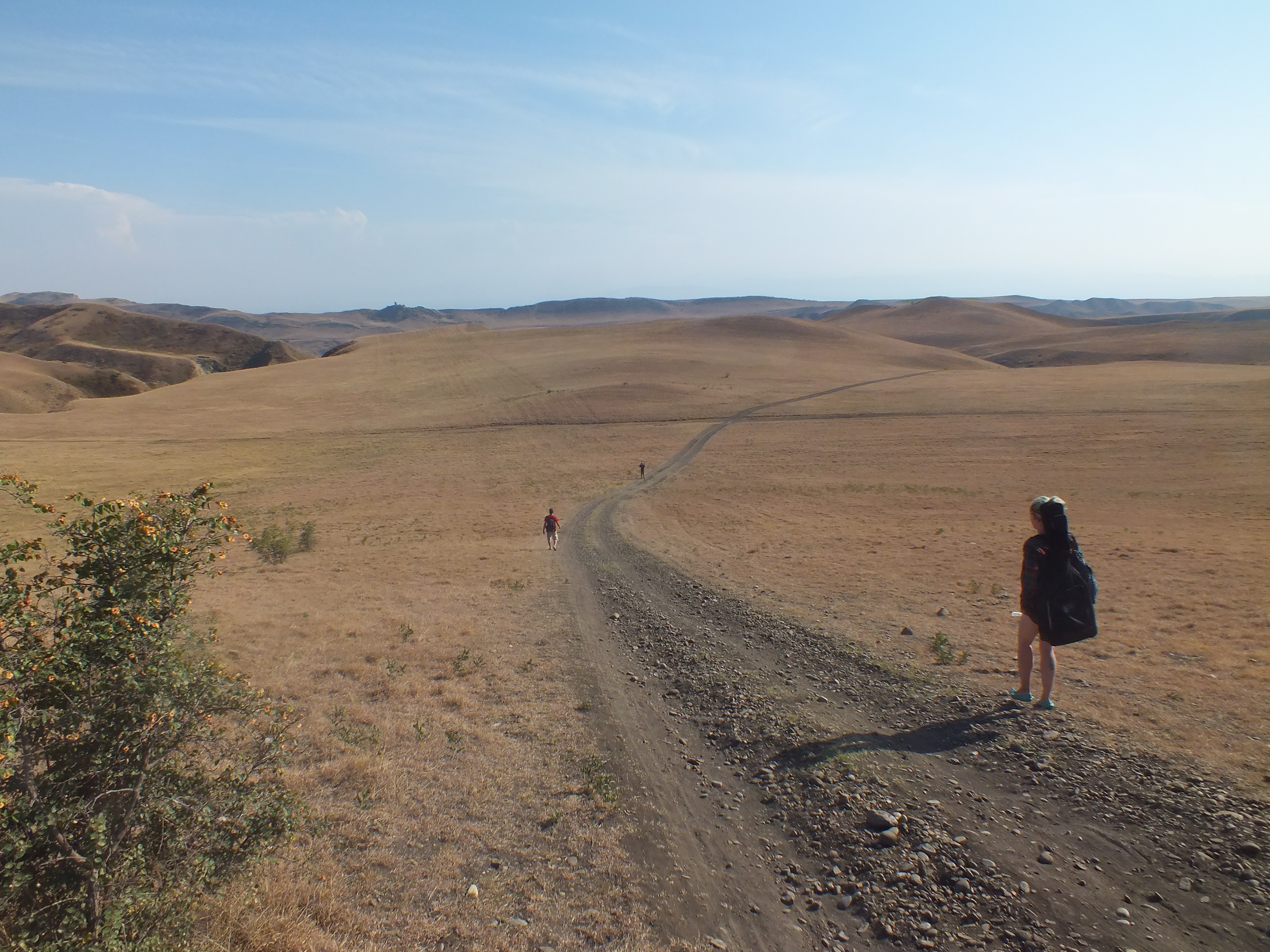 Once we entered the beyond it seemed to get much, much hotter. Suddenly we were soaked in sweat as we crossed the Valley of the Dead. We had to keep our eyes peeled for snakes, which are famous in the region and which we’d been given numerous warnings about. Out of the valley we entered the Crack of Doom, a rocky gorge littered with huge boulders and cave homes high up in the cliffs. By this point we began to think about turning back. It was getting late, we had set off over seven hours ago and there was a chance that the other teams would leave before we got there. We got word that one team had arrived at 2pm, it was now past 6. But we walked on, along the Road of Bones (there were actual bones) and up and down the three Hellish Hills until we met the road once more. We were almost completely out of water and the monastery was nowhere in sight. It was almost another hour before we found it and in that time I had climbed to the top of a high ridge, hoping to get a better view and on the other side I could see the desert plains of Azerbaijan, my next destination.