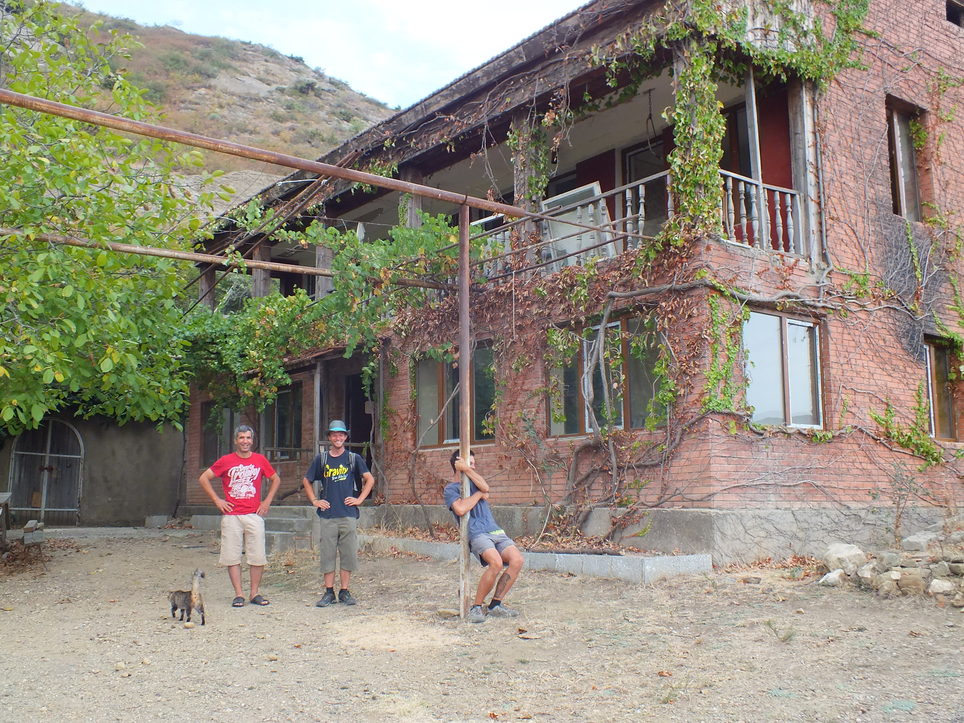By the time we had finished it was dark and we needed to find a place to stay. We found someone who worked in the monastery and Egor, our Russian negotiator, spent a long time talking to the cheerless monks. They would allow the boys to stay on the grounds of the monastery, but the girls would have had to stay outside, with the snakes, scorpions and wolves. That’s religion for ya! In the end a geophysicist offered to let us stay in his nearby house/seismology station for the night. The house was large and distinctly spooky. The furniture was threadbare and faded and there weren’t any lights. Rather than split up we dragged our mattresses out onto the large balcony to sleep. It was only the next morning that we noticed the saws hanging from the broken light fittings above our beds.