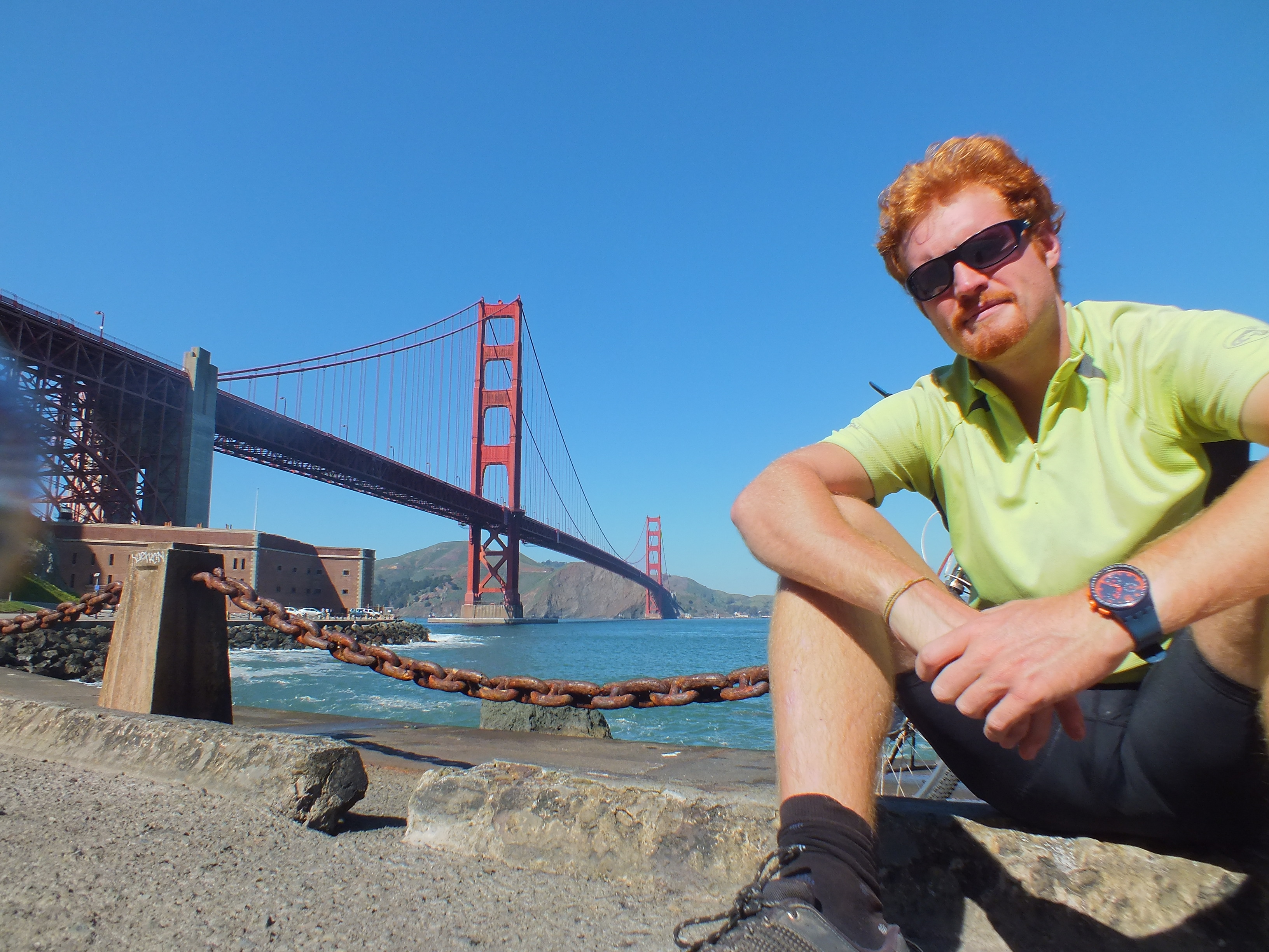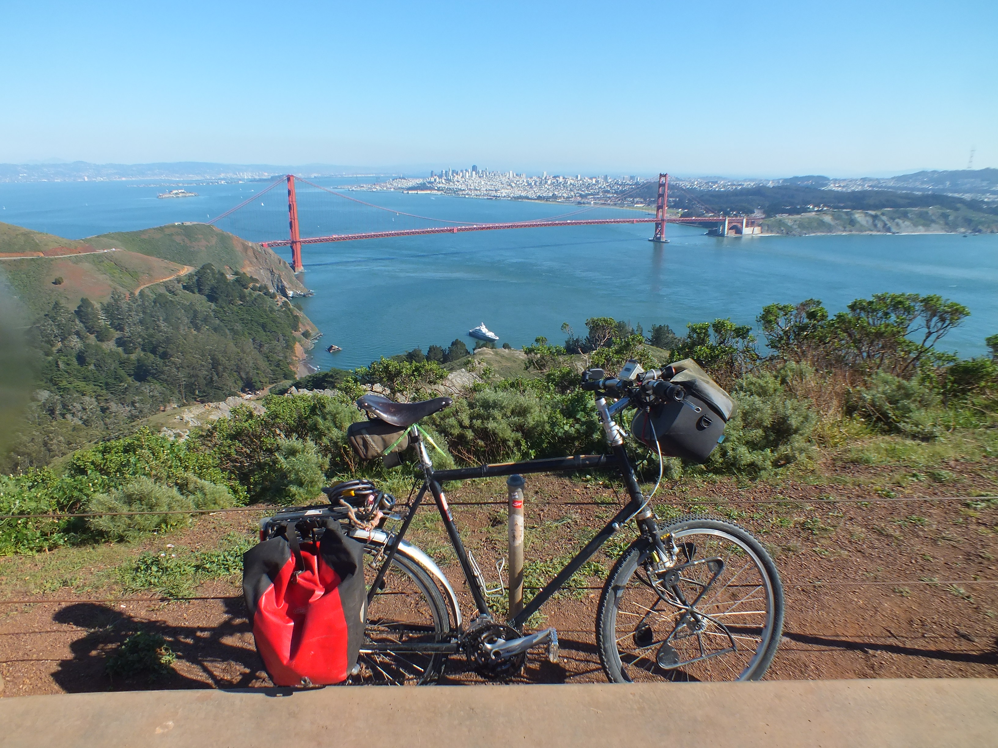 The next night I managed a healthy five hours of sleep, but I woke up refreshed and energised for a bike tour of the city. I cycled across the Golden Gate Bridge and got to the top of Hawk Hill, from where I had a wide view of the bridge and the city beyond. I took Dora to the beach and ceremoniously wet her wheels in the Pacific Ocean before we start the crossing to the Atlantic and the day finished with a highly successful dumpster diving session, which I’ll tell you more about soon.
